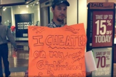 Mujer se venga de su novio infiel haciéndolo llevar humillante cartel por la calle (FOTO)
