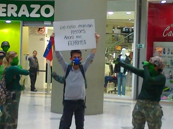 Este miércoles en horas de la tarde, estudiantes -vestidos de militar- protestaron en las inmediaciones del centro comercial Sambil en Caracas. Uno de ellos sostenía un mensaje que decía: «De niño eran mis héroes, ahora me reprimen». Con información de El Diario de Caracas Fotos cortesía de El Diario […]
