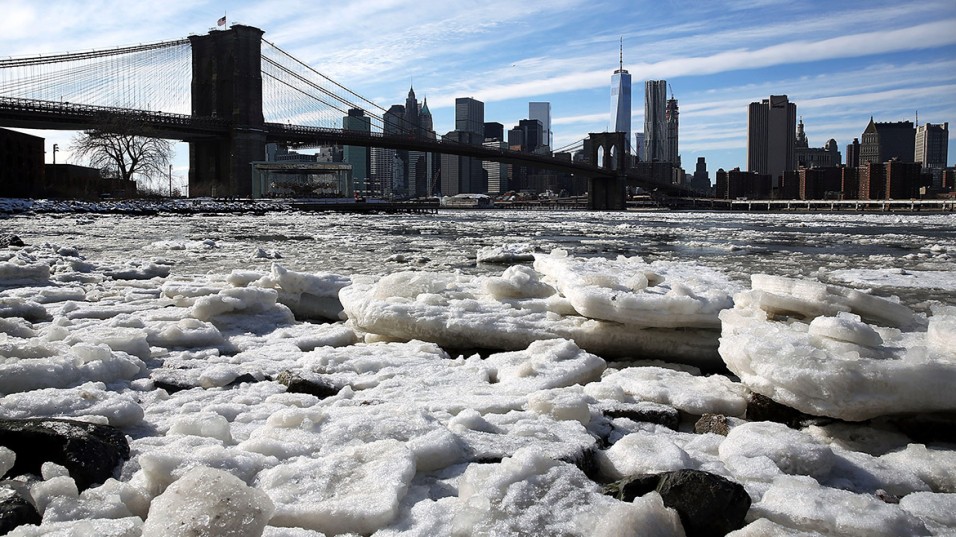 Acumulación de nieve en el East River, cerca del Puente de Brooklyn / Foto: AFP Fuente: Infobae
