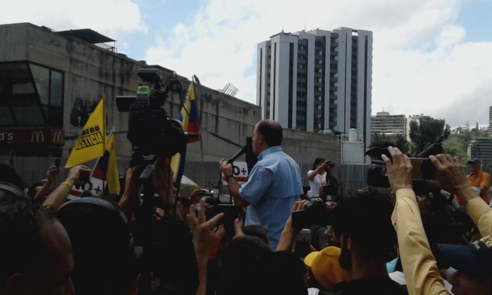 Los diputados opositores de la Mesa de la Unidad Democrática (MUD), dirigentes políticos de sus partidos y ciudadanos adversos al gobierno de Nicolás Maduro participaron en la sesión parlamentaria especial convocada para este sábado en la plaza Brión de Chacaíto. La sesión comenzó a las 11:30 am y terminó a las 12:30 mm. Fue presidida […]