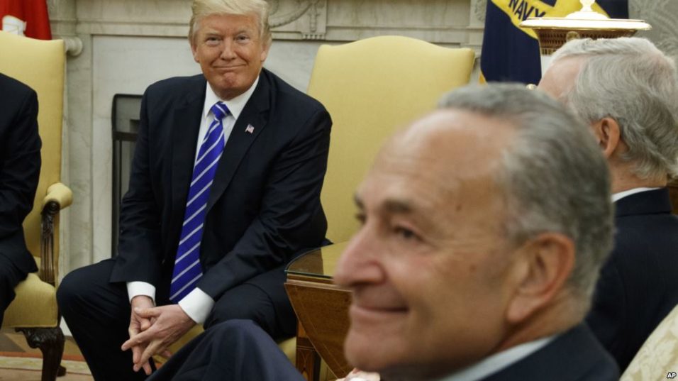 President Donald Trump and Senate Democratic Minority Leader Chuck Schumer are seen during a meeting with other Congressional leaders in the Oval Office of the White House in Washington, Sept. 6, 2017. El presidente Donald Trump tuiteó el sábado que ha hablado con los líderes demócratas para tantear la posibilidad de que estén […]