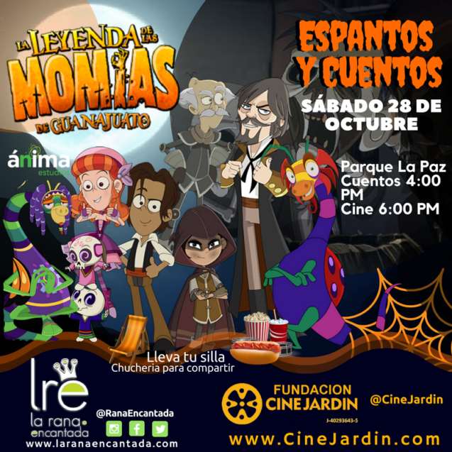 La Fundación Cine Jardín, La Rana Encantada y Anima Estudios de México invitan a la familia a un sábado de Espantos y Cuentos, el sábado 28 de octubre desde las 4:00 PM en la Concha Acústica del Parque La Paz en el Paraíso con la proyección de la película «La Leyenda de las Momias de Guanajuato». […]
