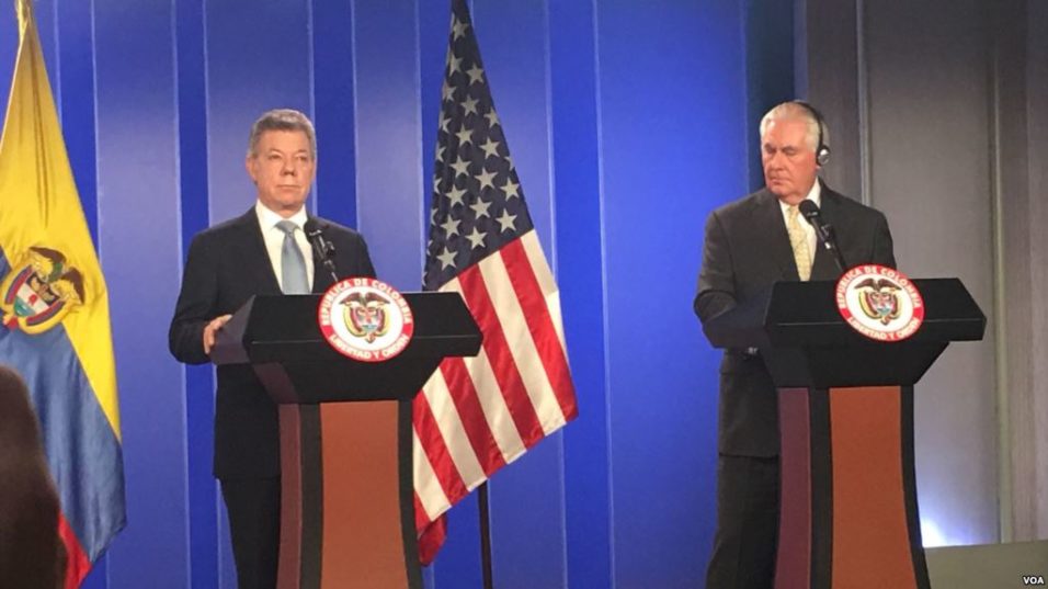 Secretario de Estado de EEUU, Rex Tillerson (der.) y presidente de Colombia Juan Manuel Santos, en rueda de prensa en Bogotá, tras su reunión para hablar de asuntos bilaterales y regionales. Estados Unidos y Colombia trabajarán a través del Grupo de Lima y de la OEA para «restaurar la democracia» en Venezuela, […]