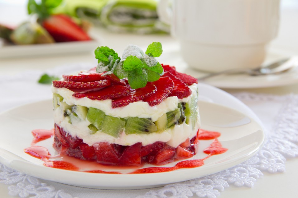 Milhojas de fresas, kiwi y queso crema, ¡Ñum!