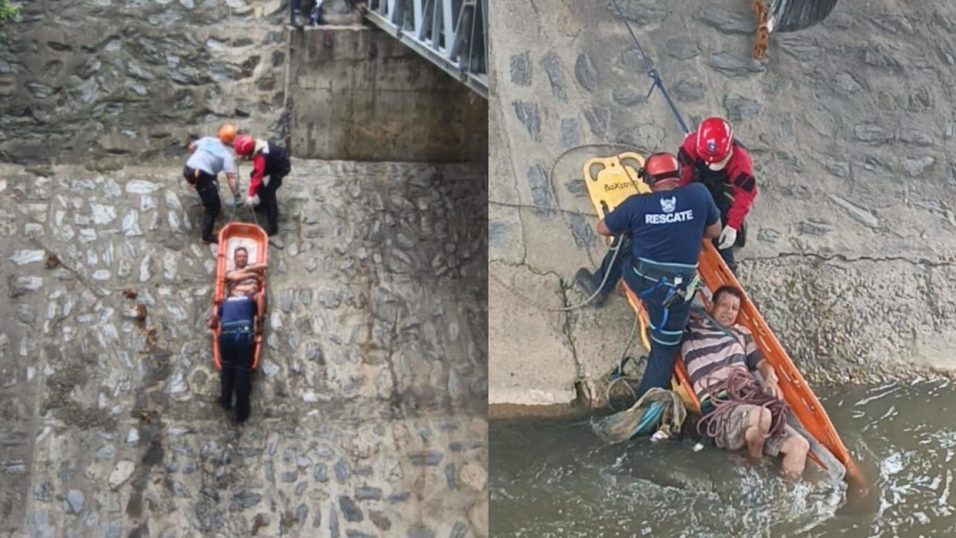 Bomberos de Caracas rescatan a hombre que cayó al río Guaire