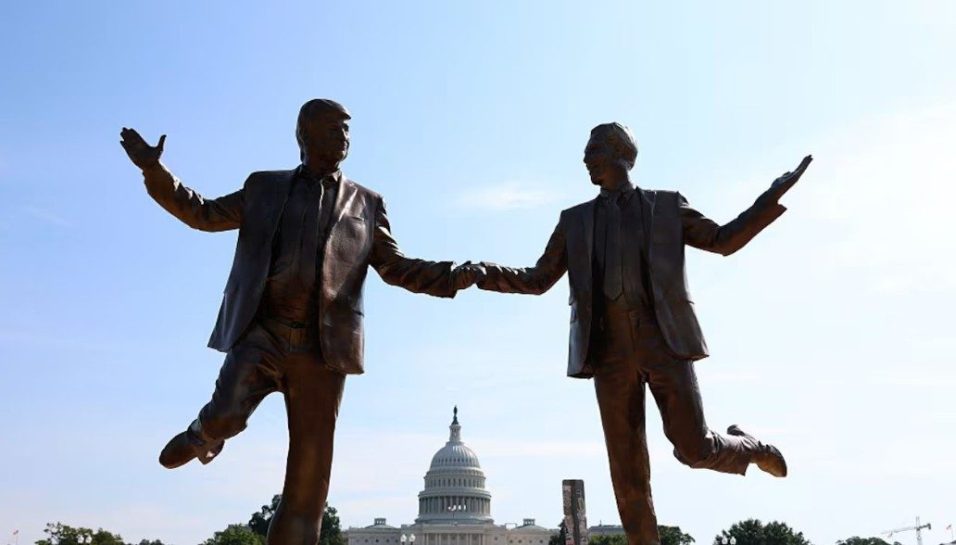 Retiran la escultura de Trump y Epstein agarrados de la mano en Washington