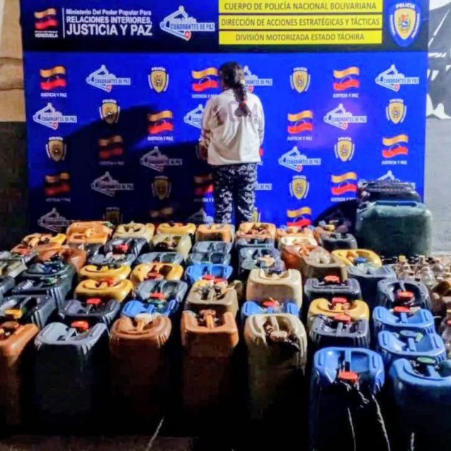 La Policía Nacional Bolivariana (PNB) informó este lunes sobre la detención de una mujer en Táchira por presunto comercio ilegal de combustible. “Durante el procedimiento, fueron incautados 1.600 litros de gasolina, contenidos en distintos recipientes de vidrio y plástico, ubicados en las adyacencias de la carretera principal a Rubio, a la altura del […]