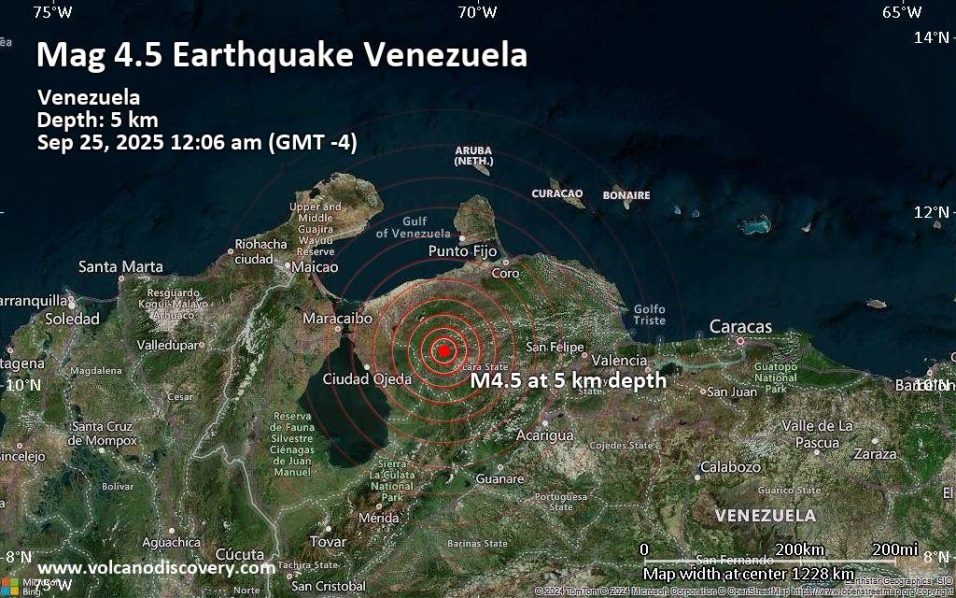 Funvisis registró cuatro sismos la noche de este #29Sep: Dos de ellos en el Zulia