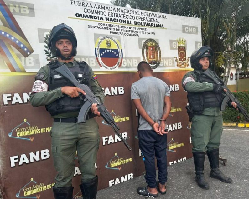 Funcionarios de la Guardia Nacional Bolivariana (GNB) detuvieron este martes a Elly García Carmona, señalado como presunto autor material de un femicidio ocurrido recientemente en la ciudad de Guasdualito, estado Apure. La detención se produjo tras labores de búsqueda e investigación desarrolladas por los cuerpos de seguridad en la localidad, lo que permitió ubicar y […]