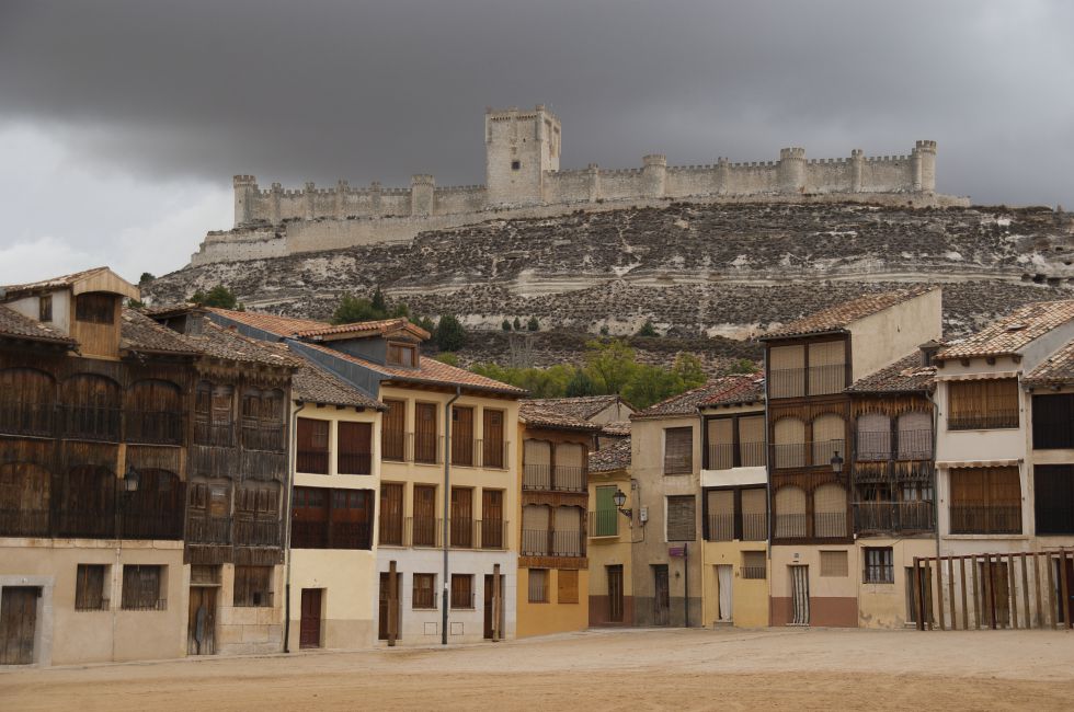 Su forma alargada, como de barco, se debe a la loma estrecha y larga sobre la que se asienta. Su origen se remonta al siglo X, cuando se convirtió en punto clave en la línea defensiva del Duero para musulmanes y para cristianos. Pero su aspecto actual se fraguó en los siglos XIV y XV. Su ala sur acoge el Museo Provincial del Vino. Merece la pena la vista desde la escenográfica plaza de Peñafiel.