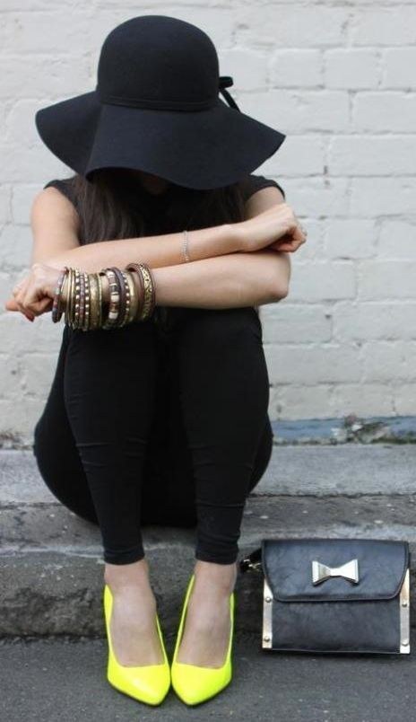 13. Vestirse de negro tendrá otro significado si agregas un par de stilettos fosforescentes.
