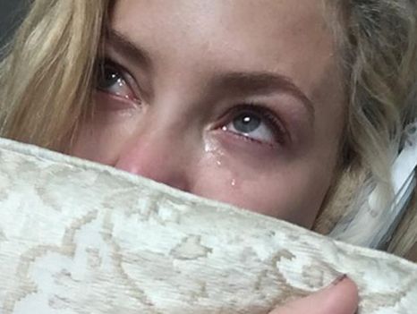 La actriz estadounidense Kate Hudson publicó una foto en Instagram en la que aparece abrazando un cojín y lágrimas en sus ojos.