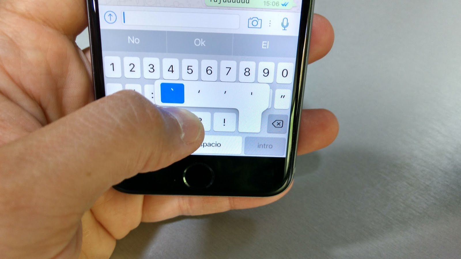 Para que te aparezcan los textos con la tipografía Fidexys en WhatsApp tienes que poner tres acentos graves delante de la palabra o frase y tres acentos graves más al finalizarla. Pero ¿cómo se ponen esos acentos graves? Te lo explicamos mejor con una imagen en iOS, en donde debes irte al apartado de códigos especiales, seleccionar el acento y cambiar entre las opciones disponibles.