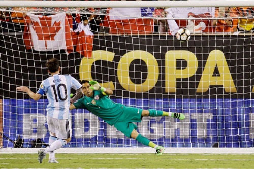 Lionel al momento de errar su tiro penal durante la final de la Copa América Centenario