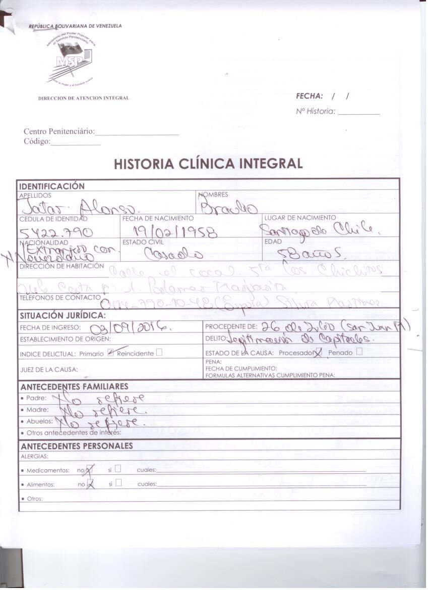 Familiares aseguran que se les ha negado el acceso a los informes médicos. «Nosotros creemos que el fin de semana estuvo a punto de sufrir un accidente cerebro-vascular porque la tensión le llegó a 25”, aseguró su hermana Ana Julia Jatar.