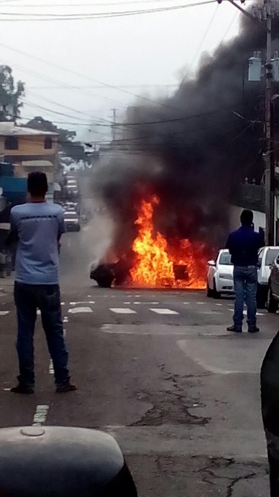 Una camioneta perteneciente a Corpoelec fue incendiada -este jueves- en las adyacencias de la Universidad Católica del Táchira (UCAT). Sujetos no identificados iniciaron el fuego del vehículo retenido más temprano durante una protesta.