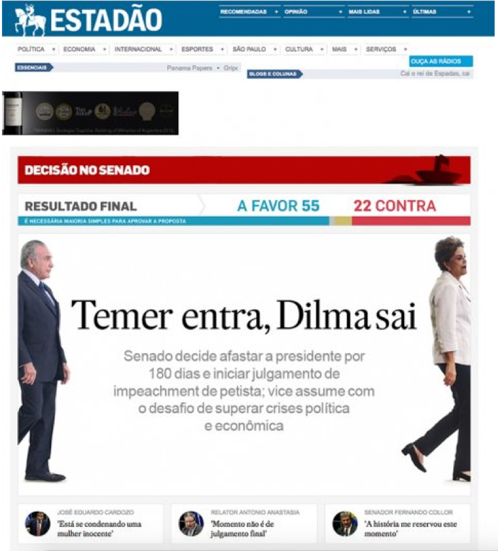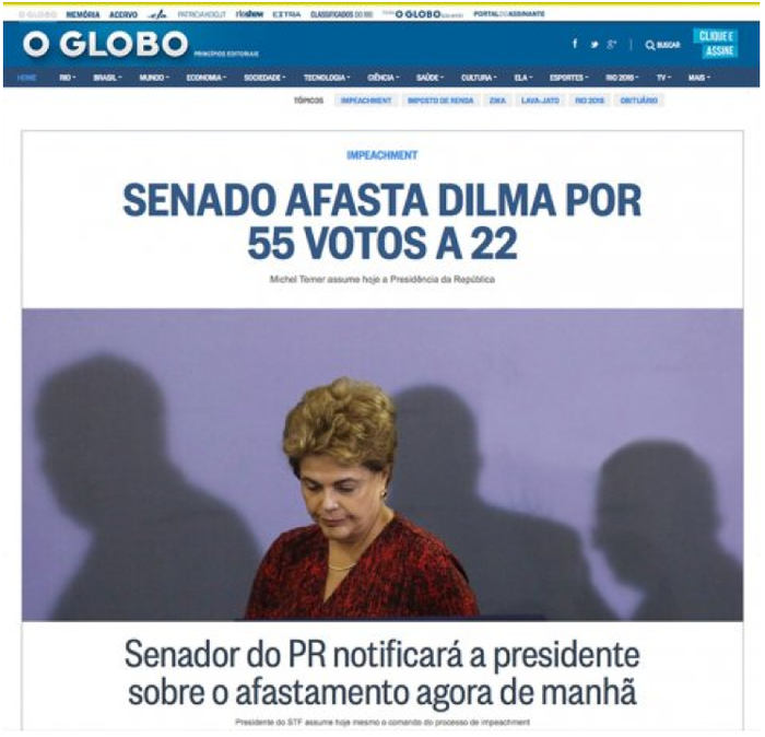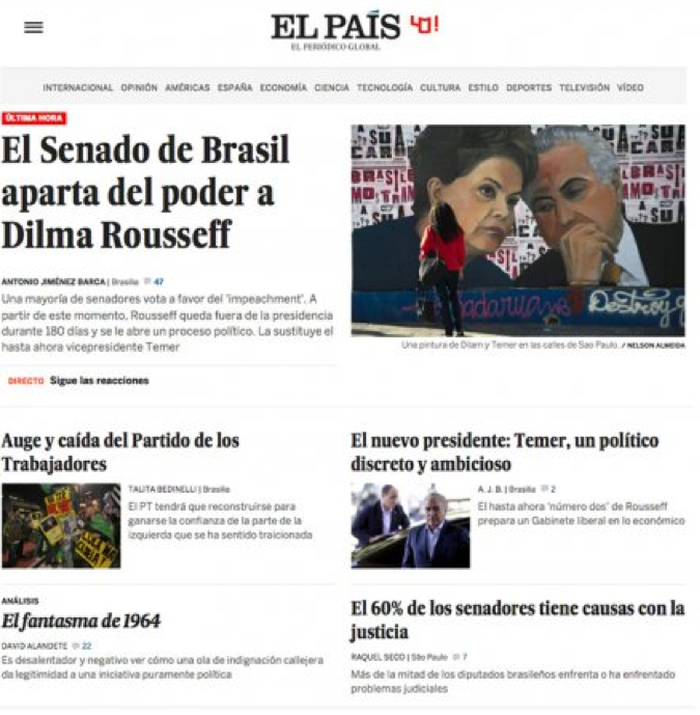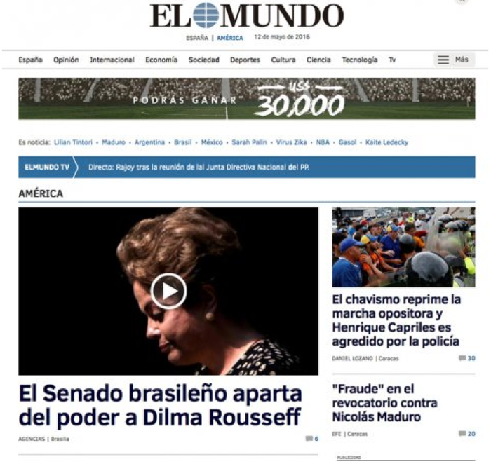 La decisión del Senado de este jueves, que aprobó el juicio político contra Dilma Rousseff y por en consecuencia la separación de su cargo por 180 días, ocupa los principales portales de medios de comunicación y la prensa escrita mundial.
