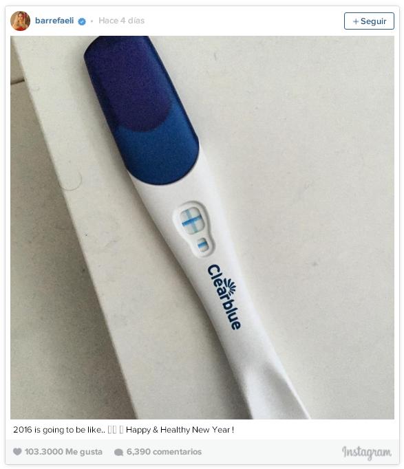 Junto a la imagen del test que dio positivo la joven de 30 años escribió: “2016 será un año alegre y sano”.