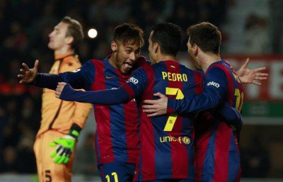 6 – Barcelona: Bravo; Montoya, Piqué, Bartra, Jordi Alba (Adriano, m.70); Mascherano (Busquets, m.70), Xavi (Sergi Roberto, min.72), Rafinha; Pedro, Neymar y Messi.