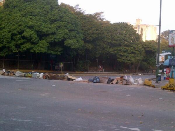 Este jueves varias vías de la Gran Caracas amanecieron obstaculizadas por barricadas, entre ellas, la avenida Sucre de Los Dos Caminos, Avenida Tovar de San Bernardino y avenida Neverí de Colinas de Bello Monte. Asimismo se reporta el cierre de vías en El Cafetal, La Bonita, Los Samanes, Terrazas de Club Hípico y Minas de Baruta. También la carretera Vieja Caracas-Baruta, a la altura de El Placer, está cerrada.