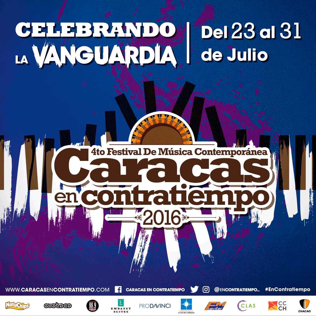 Del 23 al 31 de julio Caracas, Valencia y Lechería se convertirán en sede del Festival Caracas en Contratiempo, una fiesta musical que por cuarto año consecutivo reunirá a los artistas más destacados de la escena contemporánea. Esta celebración en torno a la música es posible gracias al apoyo de Natuchips y FM Center.
