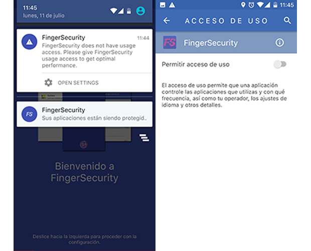 Para que pueda funcionar, FingerSecurity debe tener acceso al resto de aplicaciones de tu móvil. Puede que seas reticente a conceder estos permisos, y estás en tu derecho. La privacidad puede ser un problema en Android, especialmente teniendo en cuenta la cantidad de malware que circula para este SO.