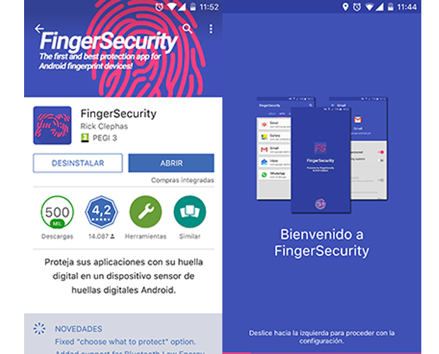 FingerSecurity es una aplicación que se puede descargar gratis desde Google Play. Cuenta con un modo premium por el que tendrás que pagar, pero para bloquear tu WhatsApp con el lector de huellas dactilares no es necesario.