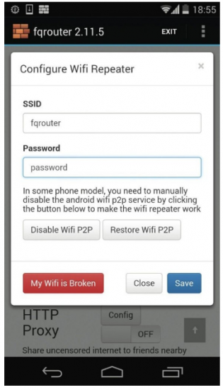 Como Android como tal no nos ofrece solución para disponer de un repetidor WiFi (y no que distribuya los datos móviles a través de una WiFi), tendremos que recurrir a una aplicación, como por ejemplo FQRouter2. Esta aplicación nos permitirá montar un repetidor WiFi para compartir la misma conexión WiFi a la que estemos conectados.