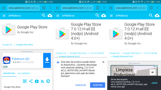 No obstante, si la última versión de Google Play no te deja instalar aplicaciones o te daproblemas de otro tipo, siempre puedes ir retrocediendo a apk anteriores hasta dar con uno que sirva.