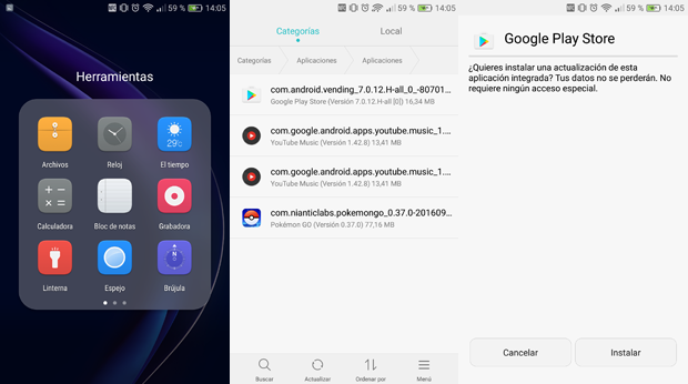 Al igual que en cualquier ordenador, en Android sólo tienes que ejecutar un archivo de instalación para instalar una app. El de Google Play estará en la carpeta de descargas del móvil, a la cual puedes acceder a través del navegador de archivos que el móvil trae integrado.