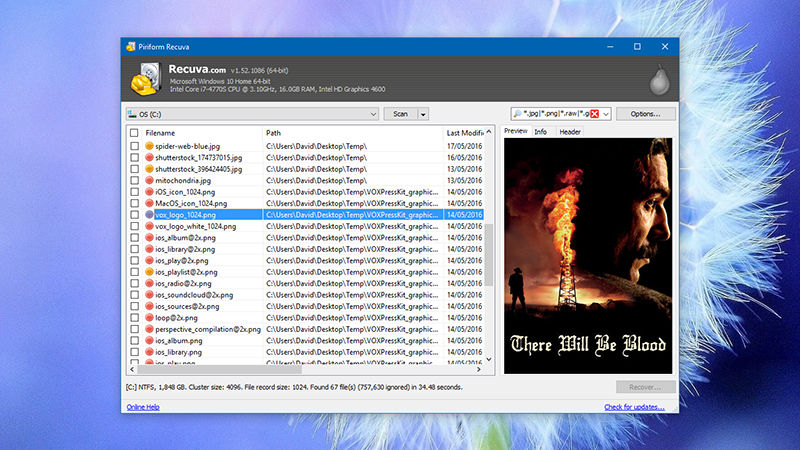 Recuva te da a elegir entre un asistente paso a paso o una interfaz “avanzada”, con más opciones. En ambos casos puedes seleccionar el tipo de archivo que has perdido y dónde estaba (si lo sabes) para que Recuva se ponga a trabajar. Si la aplicación no encuentra nada, puedes optar por un análisis más profundo; que es más completo, pero llevará mucho más tiempo.