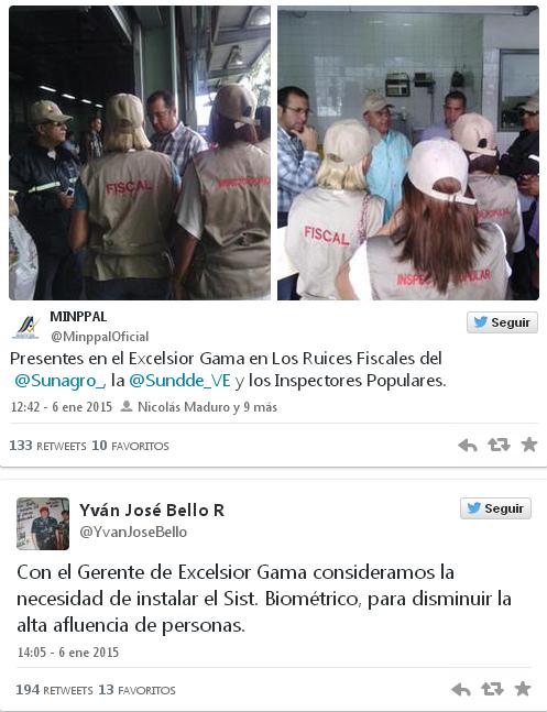 A través de Twitter, Bello expresó que durante el encuentro con Gerente de Excelsior Gama sede Los Ruices consideraron la medida, para disminuir la alta afluencia de personas que diariamente compra en el establecimiento.