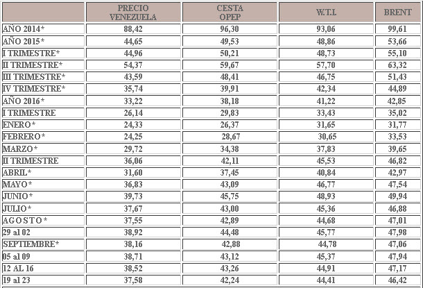 Según el reporte semanal del Ministerio de Petróleo y Minería, el crudo nacional perdió 94 centavos de dólar entre los días 19 y 23 de septiembre.