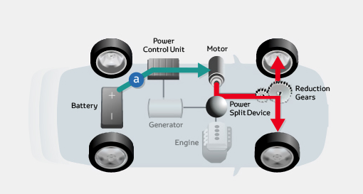 Cuando las circunstancias de la conducción requieren una aceleración rápida, la tecnología híbrida de Toyota exige más al motor eléctrico para proporcionar al vehículo toda la potencia que necesita. Para ello, la batería entra en acción inyectando energía en la unidad de control, lo que mejora el rendimiento y permite ofrecer la respuesta necesaria para llevar a cabo la aceleración.
