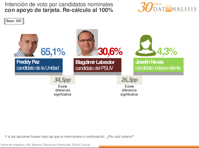 «Aquí están los números de una de las encuestadoras mas reputadas del país, Datanalisis y que ahora no pueden ser calificada por el PSUV de sesgados porque Datanalisis en elecciones anteriores cuando dio como ganador al partido de gobierno, pues este resulto ganador» Señalo el asesor del Parlamentario Zuliano.