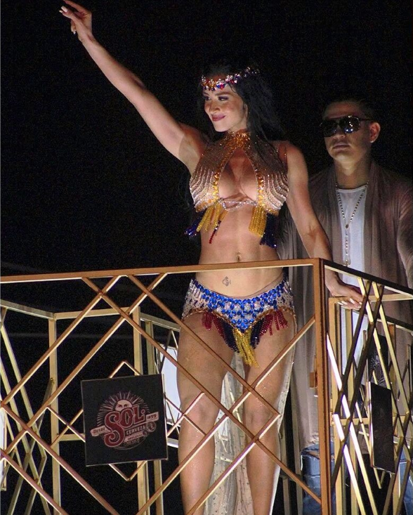 Diosa sorprendió con un sensual look, vistiendo una especie de traje de ‘garota’, que dejaba al descubierto sus pechos, su abdomen y sus piernas. El atuendo era de piedrería y estaba hecho con los colores que representan el tricolor venezolano.