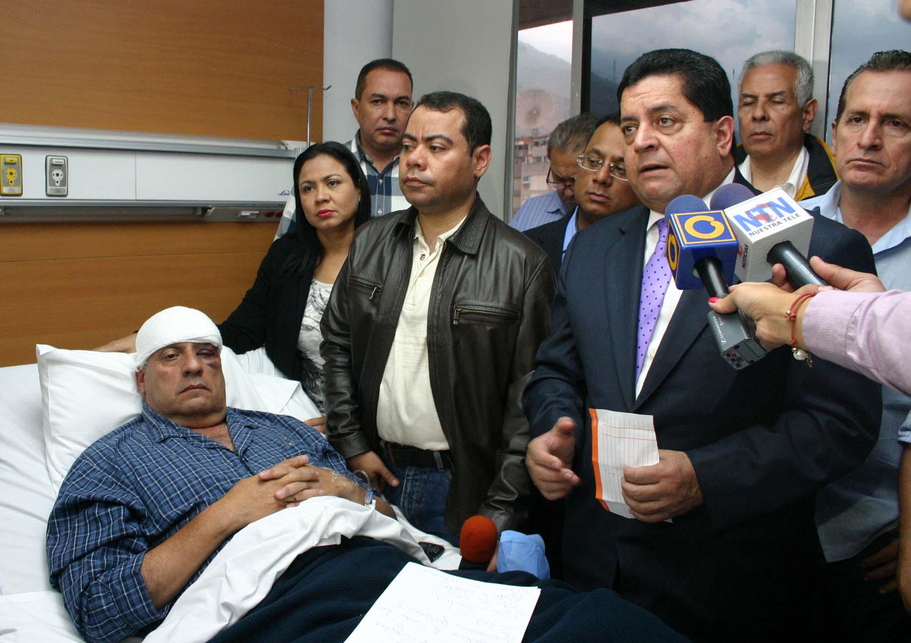 Con respecto al estado de salud del parlamentario comentó, que por los momentos no puede hablar y está siendo sometido a una serie de exámenes rigurosos ya que el oftalmólogo le indicó que estuvo a punto de tener un desprendimiento de retina. “Por dicha lesión tiene 16 puntos de suturas y otra herida contusa en la parte superior del cuero cabelludo”.