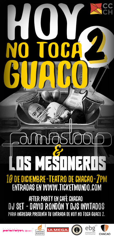 El próximo 10 de diciembre, las bandas Famasloop y Los Mesoneros se presentarán en el Teatro del Centro Cultural Chacao en la segunda edición de “Hoy No Toca Guaco”, que servirá como excusa para recorrer los temas más importantes en la discografía de ambas agrupaciones.