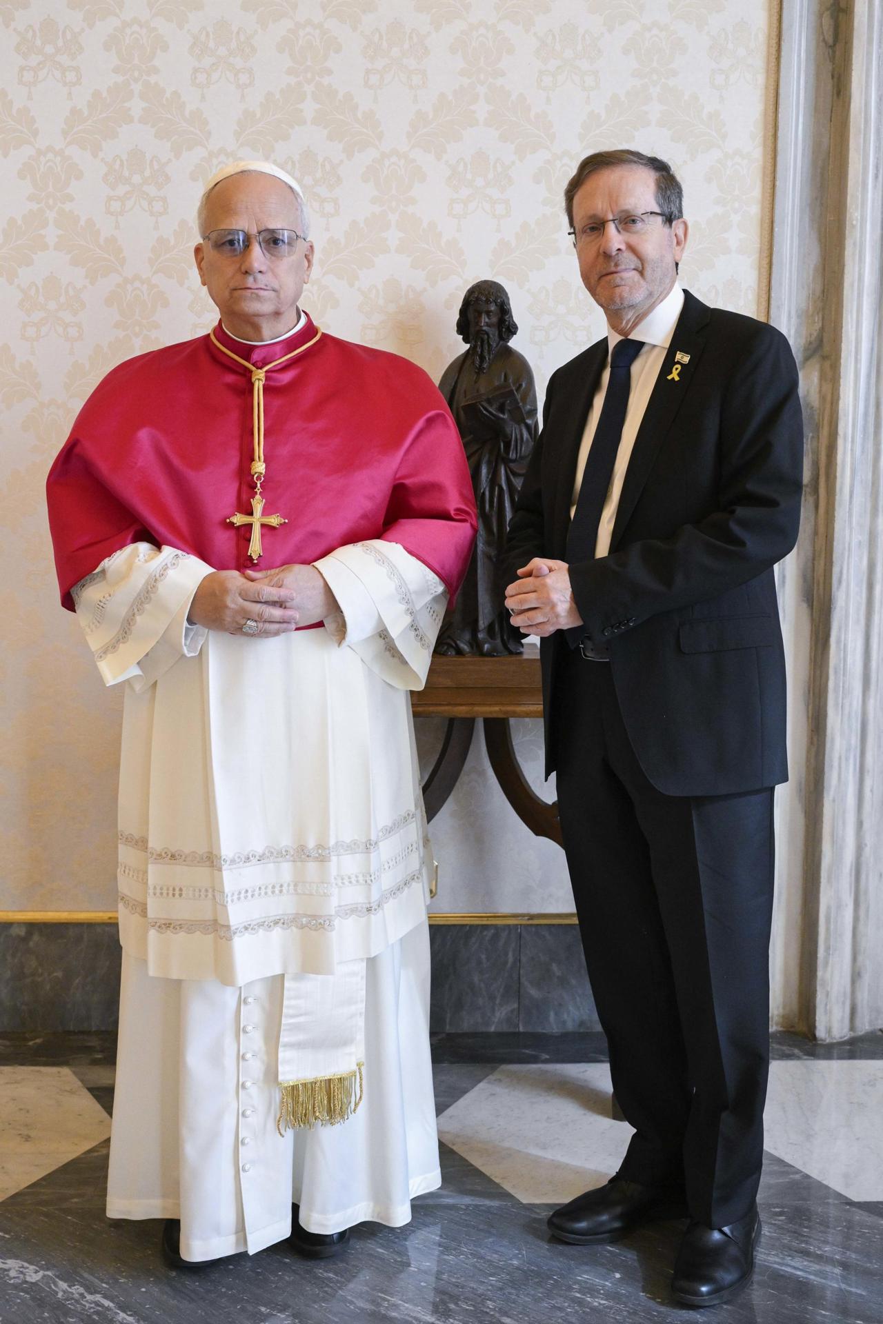 Una foto facilitada por Vatican Media muestra al Papa León XIV recibiendo al presidente israelí Isaac Herzog en la Ciudad del Vaticano, 4 de septiembre de 2025 | Foto EFE/EPA/VATICAN MEDIA