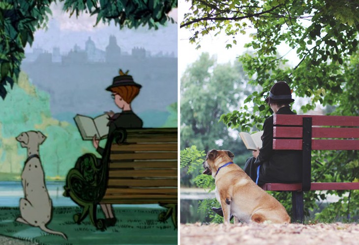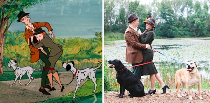 Inspirados en esta escena, una pareja de Illinois decidió recrear la historia utilizando a sus perros, Mookie e Izabella, en lugar de los adorables dálmatas Pongo y Perdita.