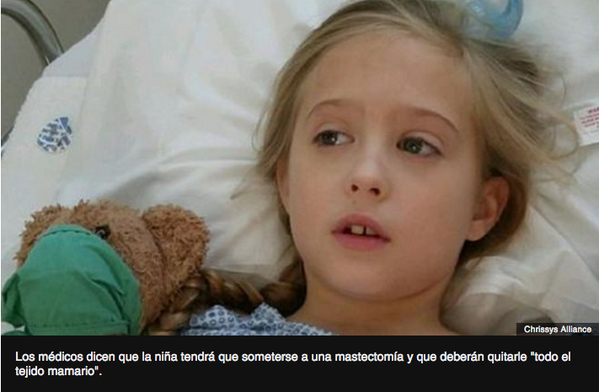 La niña reside en Utah, Estados Unidos y hace alrededor de un mes que se le descubrió un bultito en una de sus mamas…