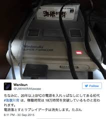Muchos han sido los juegos que se han beneficiado de este sistema, incluidos los primeros juegos de Pokémon. Sin embargo, estas baterías tienen un periodo de vida y al cumplirse ya no es posible guardar los progresos en memoria, salvo que uno decida no apagar jamás la consola, claro. Y esa última ha sido la decisión deWanikun, un japonés que se ha mantenido su partida de Umihara Kawase para Super Nintendo encendida prácticamente 20 años y con la única excepción de la vez que se mudó de casa.