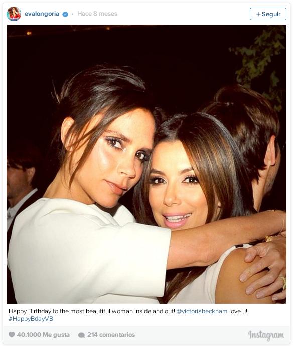 Eva y Victoria se hicieron íntimas en 2007 cuando la ex Spice Girl se mudó a los Ángeles con su familia. Son tan unidas que la actriz de Desperate Housewives es la madrina de bautizo de la más pequeña de los Beckham, Seven Harper.