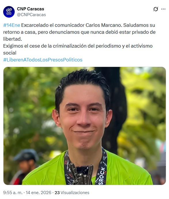Sobre la liberación de Carlos Marcano, detenido en la reciente ola de persecución de 2025, el Colegio reiteró que su captura respondió únicamente a su labor informativa.