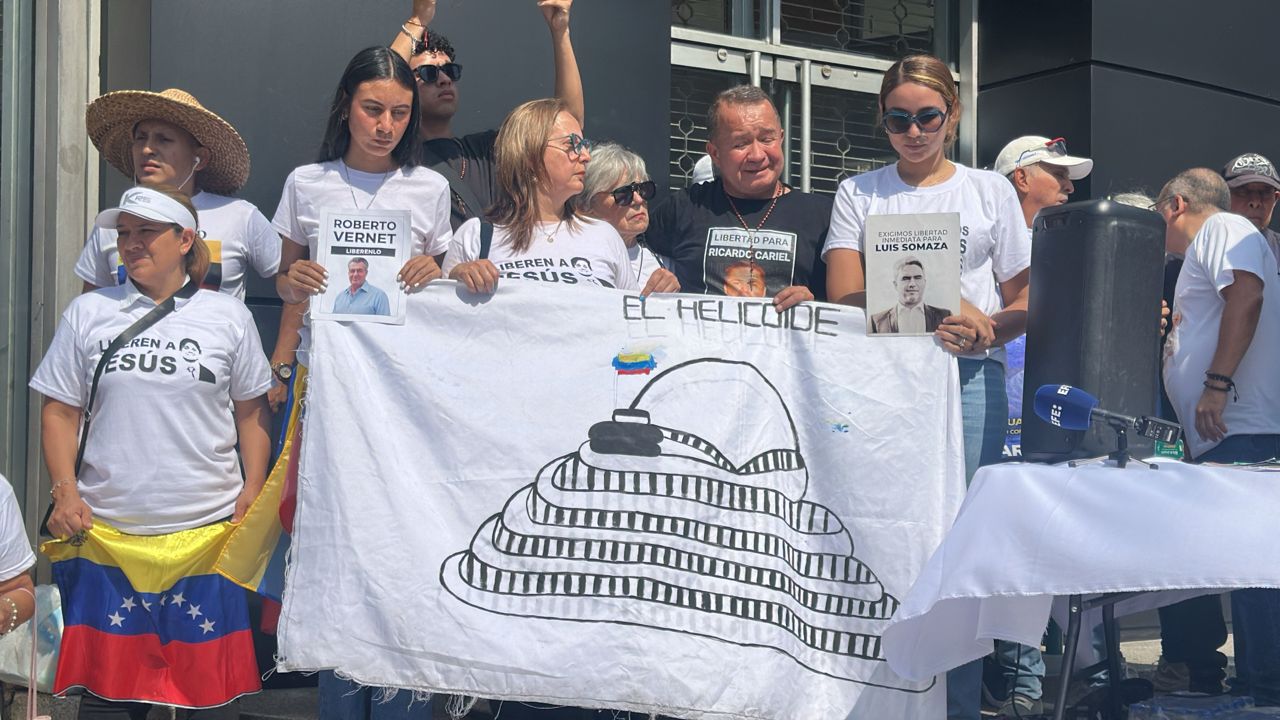 Con pancartas y fotos de los detenidos, los familiares continúan en protesta hasta que se les otorgue la libertad a todos.