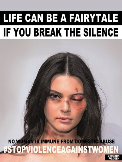 Con motivo del Día Internacional de la Eliminación de la Violencia contra la Mujer, que se celebra el 25 de noviembre, el artista italiano Alexsandro Palombo lanzó una campaña en la que modifica fotografías de mujeres famosas para mostrarlas con secuelas de golpes y maltrato en su rostro.