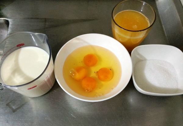 Antes de realizar el flan de naranja, el primer paso es alistar todos los ingredientes.