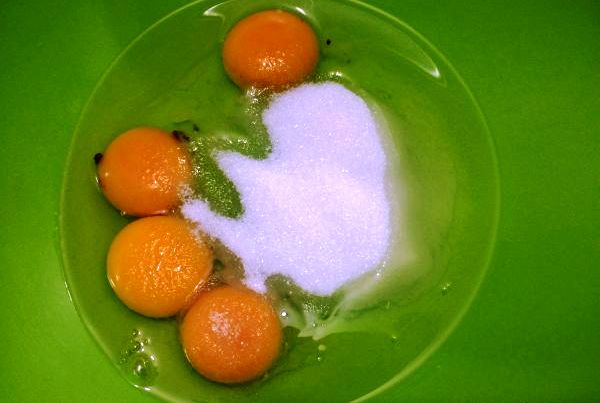 En un bol batir los huevos con el azúcar, hasta obtener una mezcla homogénea y no se sientan los granos de azúcar.