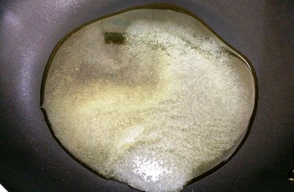 Aparte, en una sartén o un cazo, añadir el azúcar y cocinar a fuego lento sin mezclar para obtener el caramelo dorado.