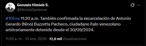 La ONG Foro Penal confirmó este sábado dos nuevas excarcelaciones de presos políticos en Venezuela, elevando a 12 el número total de liberaciones verificadas hasta ahora, luego del anuncio hecho por el gobierno sobre la excarcelación de un “número importante” de detenidos.